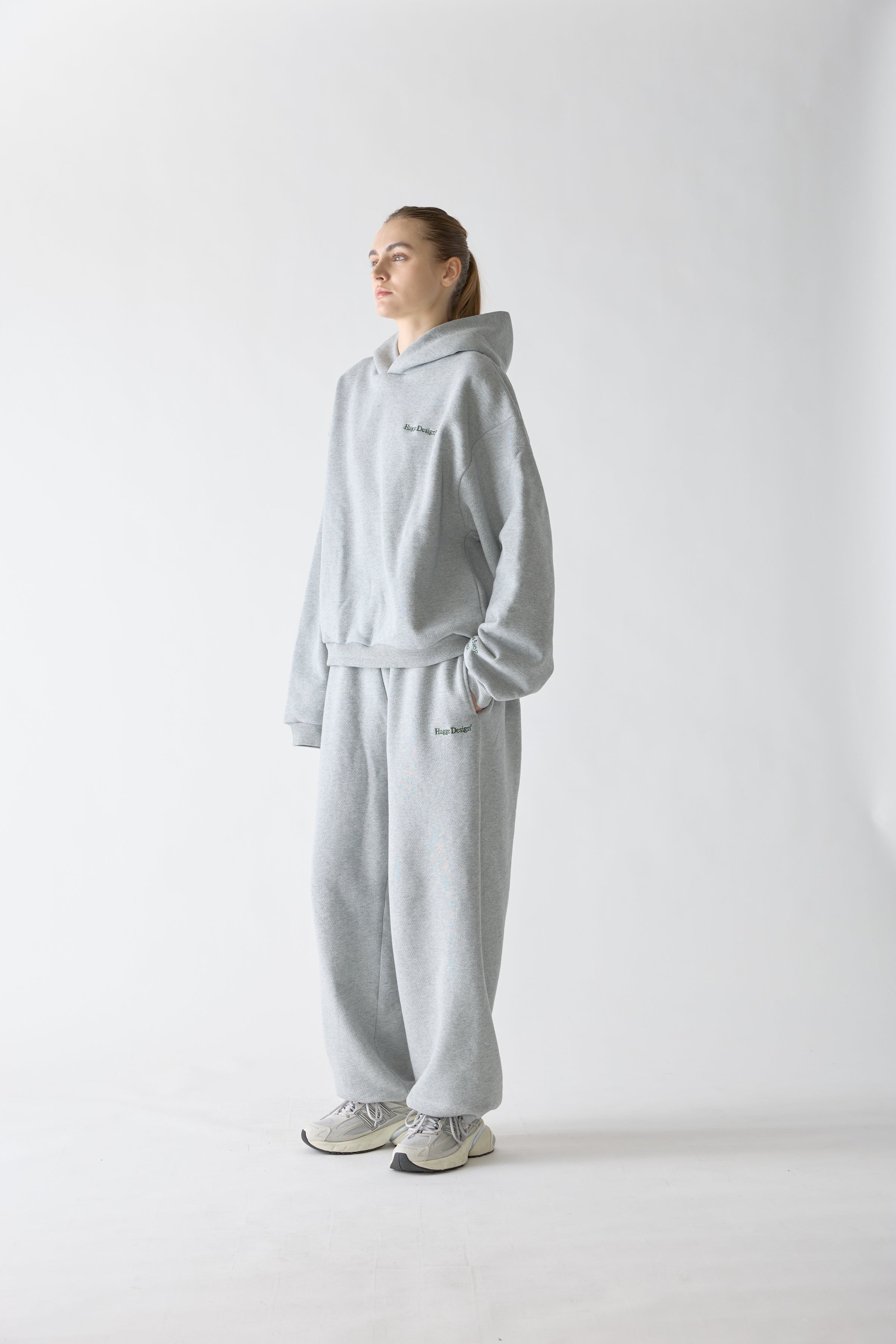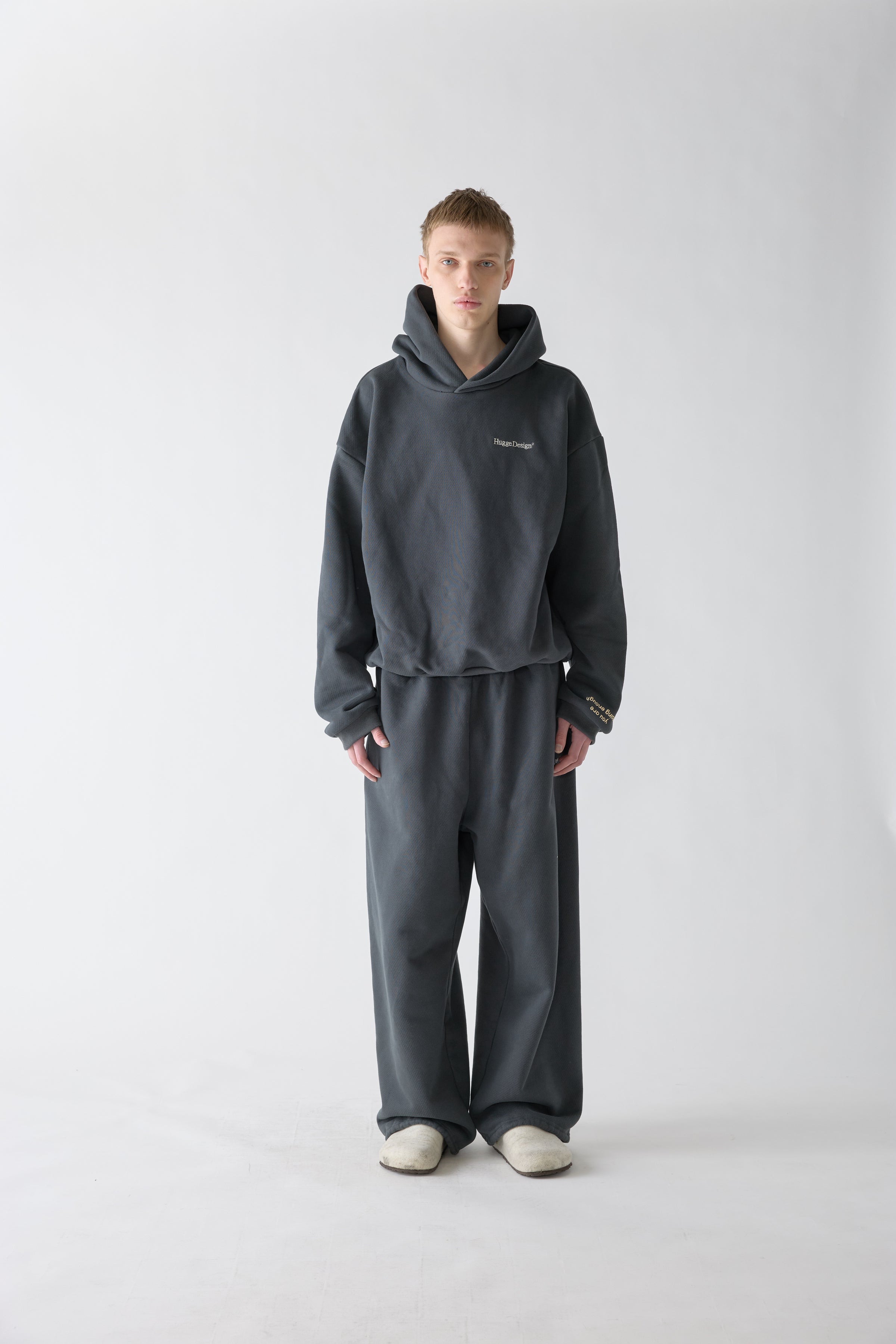 胸元にHugge Designのロゴ