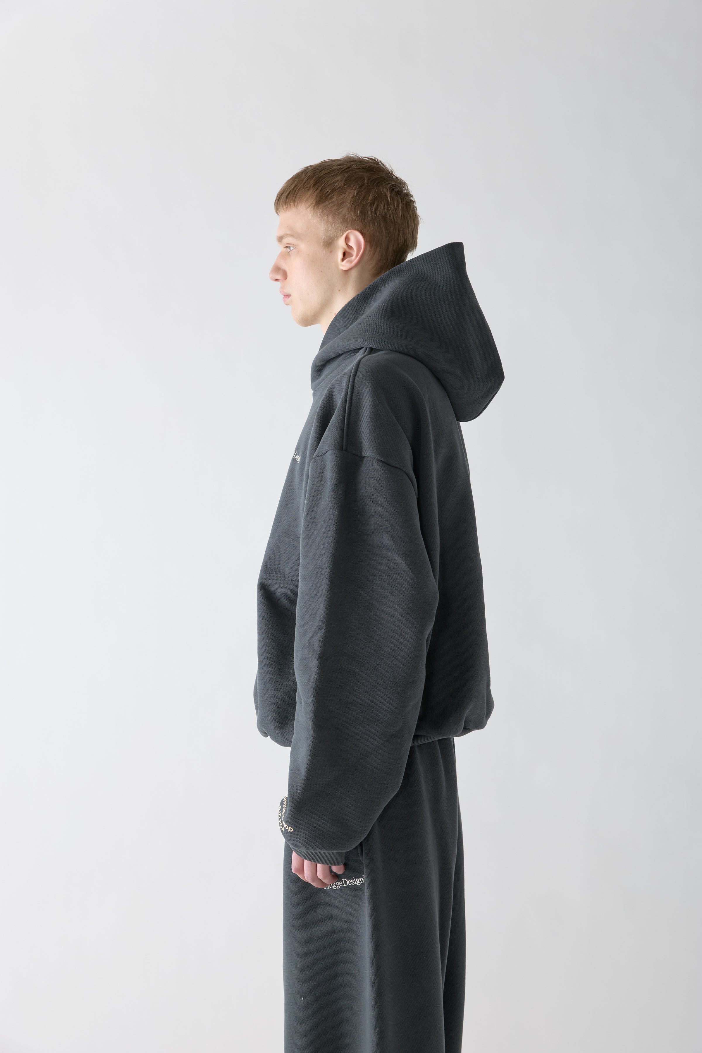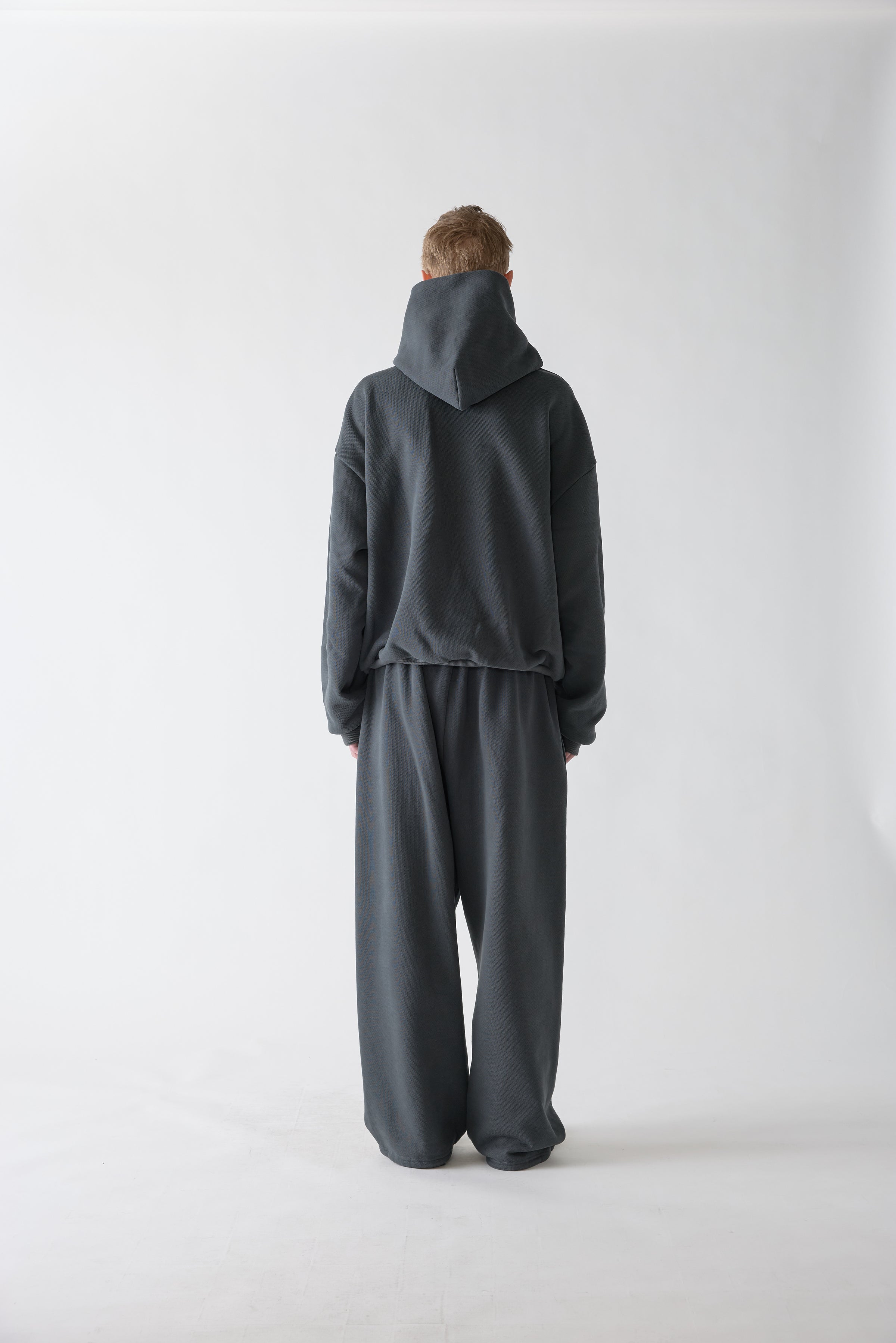 余白のあるユニセックスシルエットと立体的なフード。